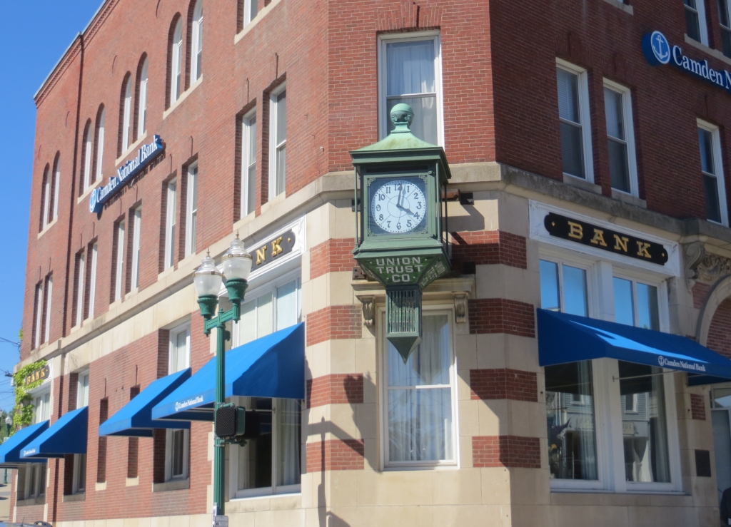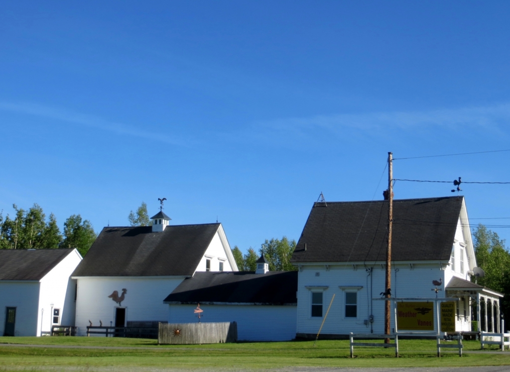 Das Wetter meint es gut mit uns, die Strecke ist wunderschön und wir stoppen schon nach ca 30 Meilen, weil wir in Rockland ins dortige kleine Museum wollen, das bekannt ist für die Bilder der Familie Wyeth. Großvater N.C. Wyeth war bekannt für seine Buchillustrationen, die man heute noch z.B. in Ausgaben von Stevensons Schatzinsel findet. Sein Sohn, Andrew Wyeth, war wohl der Berühmteste des Malerclans, seine realistischen Menschen- und Landschaftsabbildungen sind ästhetisch, mit feinen Pinseln hauptsächlich in Wasserfarben gefertigt, und wir stehen mit offenen Mündern vor den manchmal recht großen Malereien und Zeichnungen. Ein echter Könner, Künstler im alten Sinne, und deshalb auch entsprechend angefeindet von der Avantgarde des 20.Jhds. Seine Motive fand er insbesondere in seiner Heimat Pennsylvania, aber eben auch in Maine, wo er zeitweise lebte. In einem Nachruf zu seinem Tod im Jahre 2006 nannte ihn der Spiegel einen „Volksmaler“. Leider dürfen seine Bilder nicht fotografiert werden, weshalb wir nur ein Poster – die wehenden Federn – abgelichtet haben. Aber sicher wird der Leser in Google Bilder fündig. Sein Sohn Jamie bleibt ebenfall dem Realismus treu und seine streitenden Möven gefallen uns sehr. Ein Teil der Bilder ist 5 Minuten entfernt in einer ehemaligen Kirche untergebracht, dazwischen ein winziger Skulpturengaten. Wir möchten im Anschluss noch mehrt Kunst sehen und besuchen die Galerie nebenan, bevor wir uns mit einem Espresso für die Weiterfahrt fit machen.