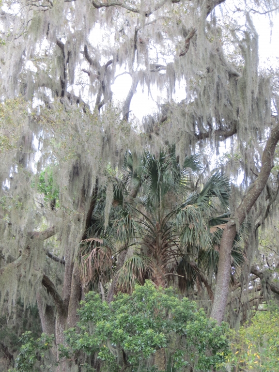 Wie die Anfahrt, so führt uns auch der Ausflug nach Cumberland Island, wo man, wenn man Glück hat, Wildpferde sehen kann, über Brücken, an hübschen Häusern vorbei in den freundlichen Ort, wo die Fähre anlegt, die uns auf die langgezogene, bewaldete Insel bringen soll. Aber der Preis von über 50 $ pro Person ist uns dann doch zu teuer. Da genießen wir lieber den Muschelstrand in unserem schönen Park.