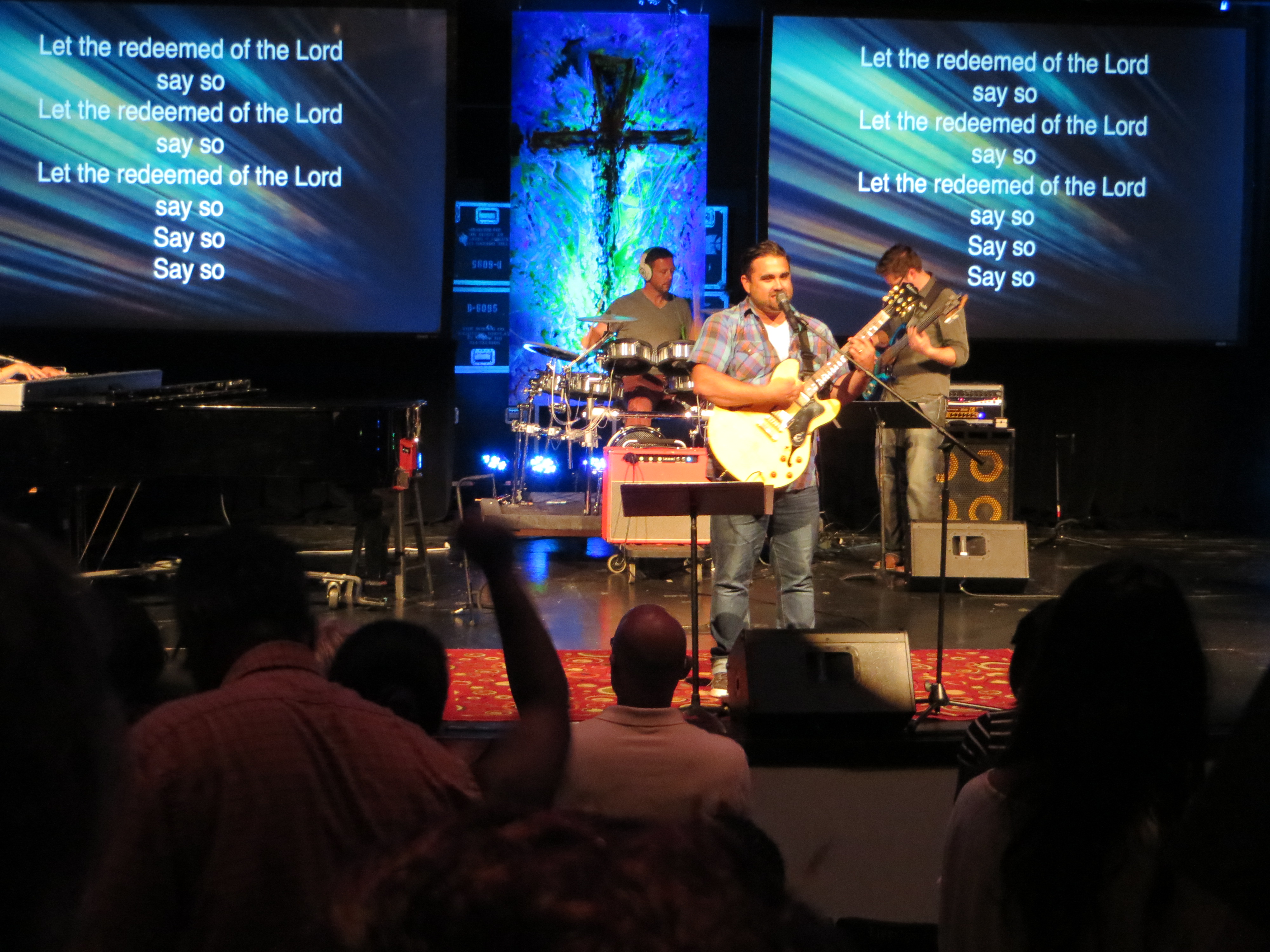 Sonntags nahmen sie uns mit zu ihrem Gottesdienst, der in einer Highschool mit Band, Lichtshow und einem jungen Prediger abgehalten wurde. Es war sehr beeindruckend.