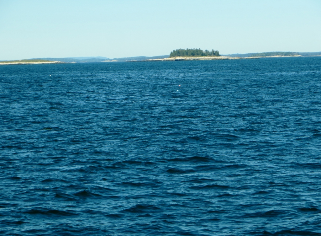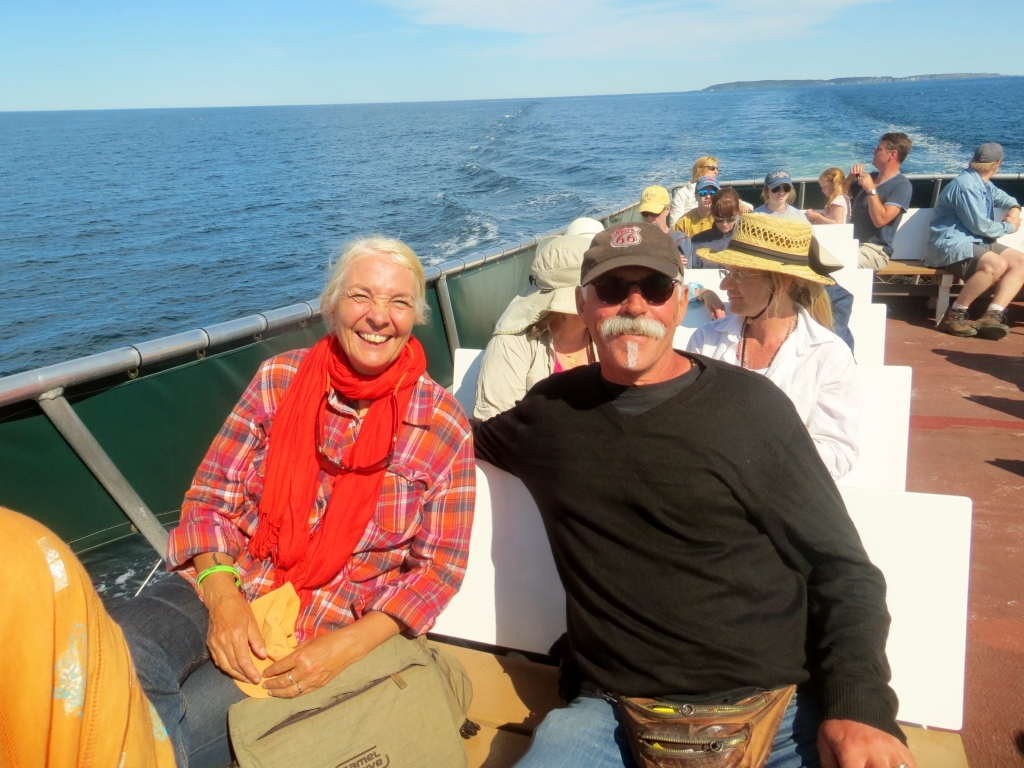 Die beiden Frauen raten uns zu einem Besuch der Insel Monhegan, auf die uns eine knapp einstündigen Fahrt übers Meer bringt. Etwa 20 m entfernt gleitet backbord eine riesigen Haifischflosse vorbei und versinkt nach 30 Sekunden wieder in der Tiefe. Endlich haben wir eine gesehen. Das muss ein Kaliber gewesen sein! Die Flosse maß an der Basis mindestens 50 cm!