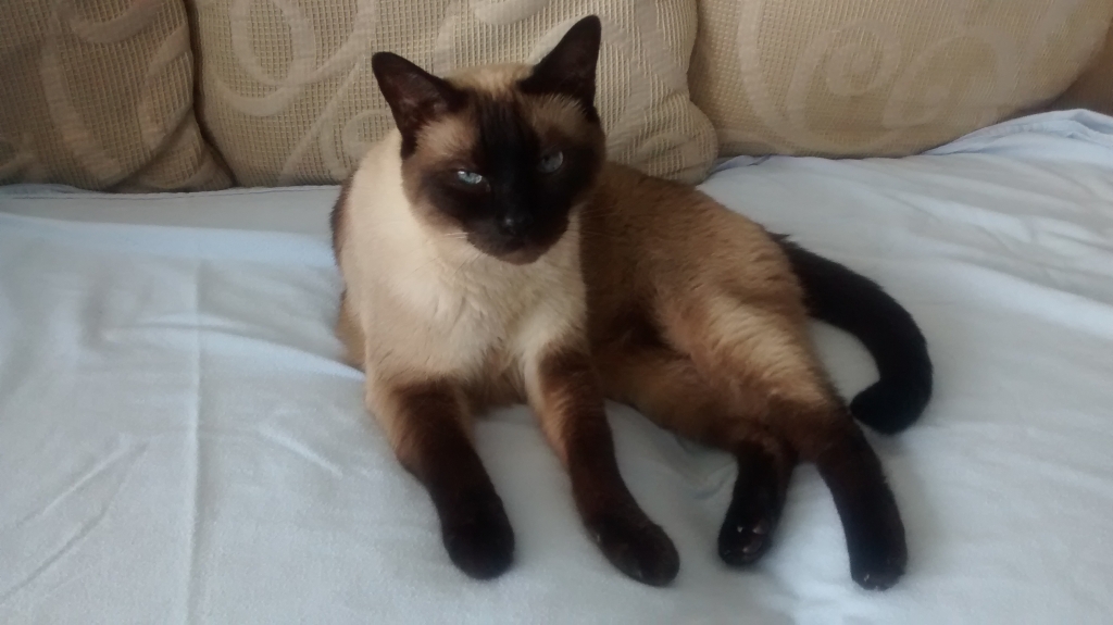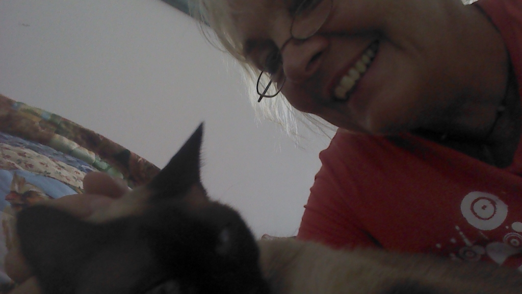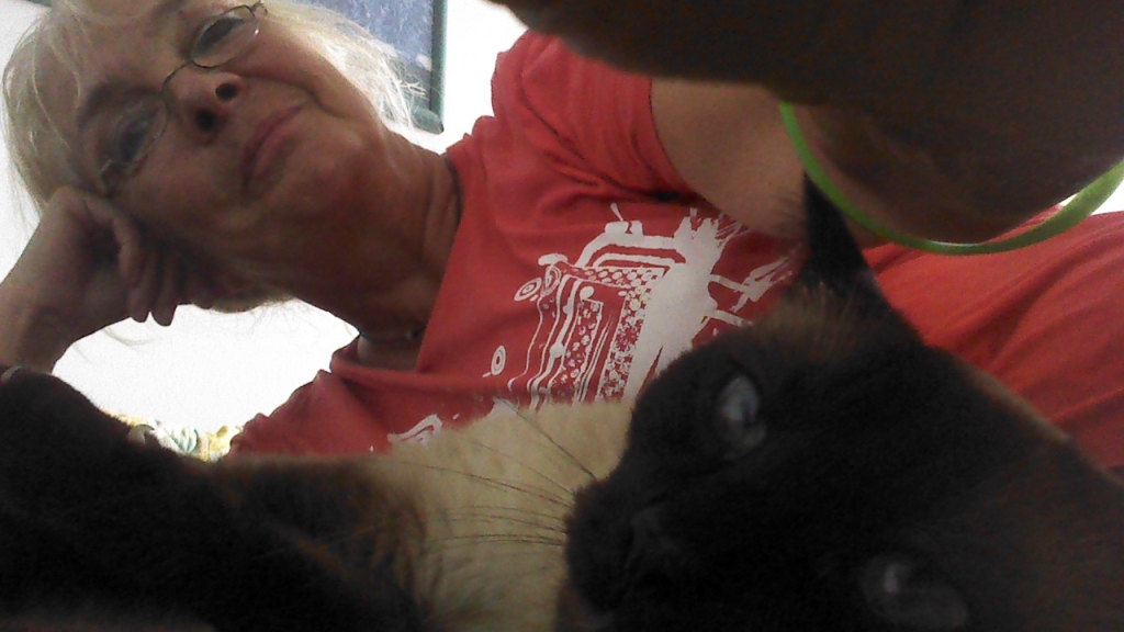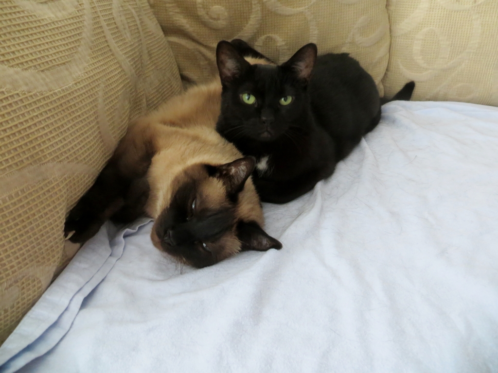 mit drei herrlichen Katzen Cody (Siam), Izzy und Coco (beide schwarz mit weißem Lätzchen).