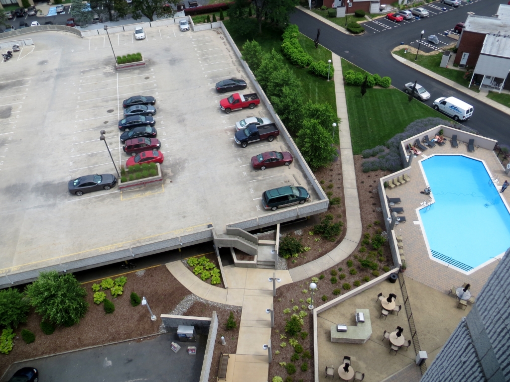 Wir wohnen im 12. Stock mit traumhaften Blick aufs Meer und den Hafen. Das Haus hat auch einen Swimmingpool, wo wir Freundschaft mit zwei ganz alten Hunden schließen.
