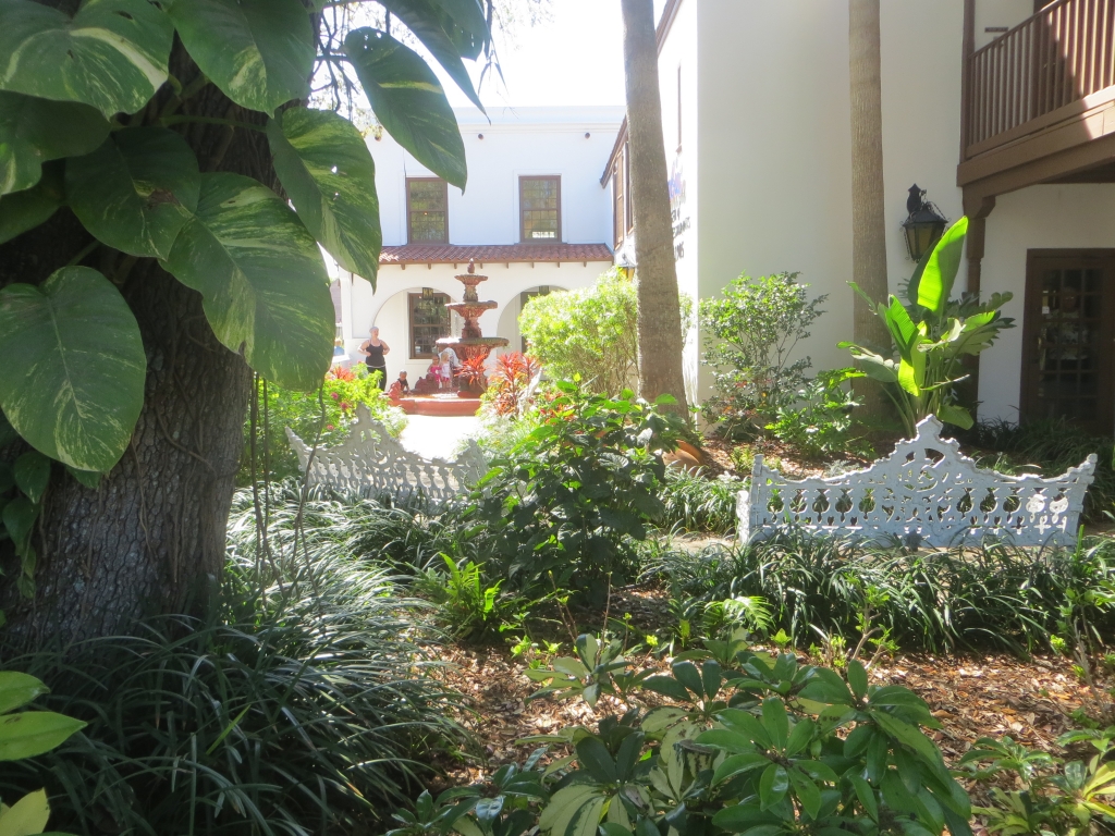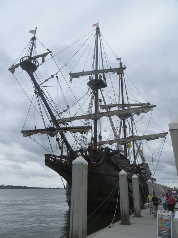 „Fountain of Youth“, Nachbildung der Quelle des Stadtgründers Ponce de Leon, der an der 2. Überfahrt des Kolumbus teilnahm, weiter segelte und die erste und älteste Siedlung in der neuen Welt, nämlich St. Augustin, gründete. Beim Rundgang übers Gelände besuchen wir die wenig beeindruckende Vorführung des Planetariums, beobachten die Balz wundervoller Pfauen, besuchen den Nachbau der ersten Häuser mit der Franziskanerkirche, halten uns die Ohren bei der Feuerung einer Kanone zu und genießen das schöne Wetter mit Sonne und Wärme. Natürlich trinken wir aus dem Jungbrunnen. Ihr werdet uns wohl nicht nehr kennen, wenn wir zuhause wieder in den Kindergarten gehen!