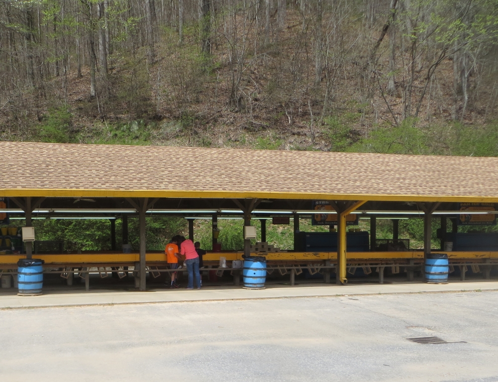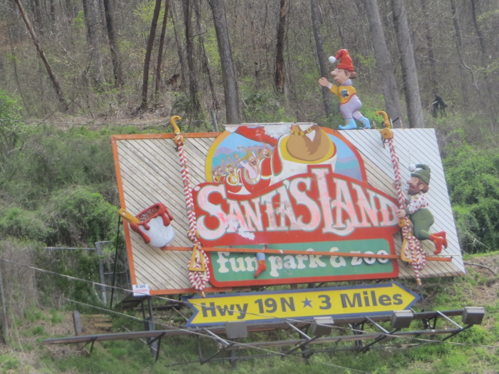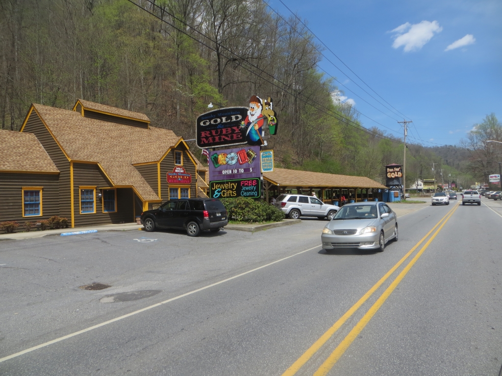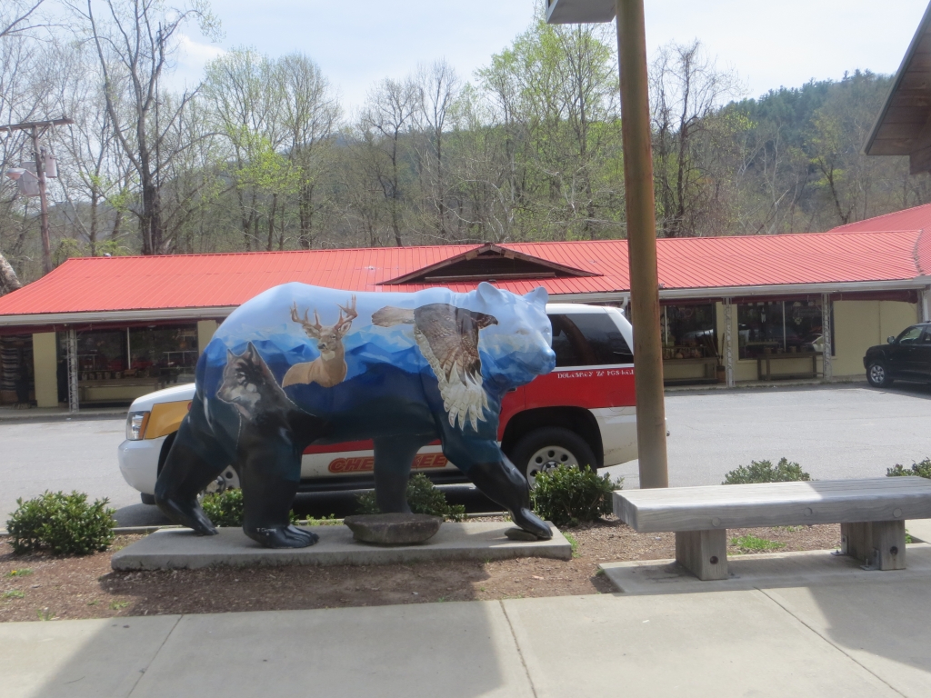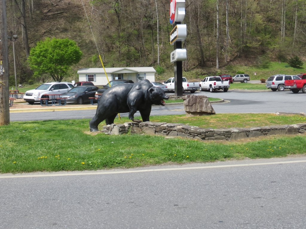 Wir halten uns nur zum Tanken auf und flüchten dann auf die 441, die uns in den Great Smokey Mountains National Park führt. Wir sind nicht so sehr begeistert: Zwar ist die Straße in gutem Zustand und interessant zu fahren, aber die Aussichtspunkte sind eher langweilig und die Natur eintönig. Wir sind hier halt zu früh dran. Nach etwa 2 Drittel der Strecke passieren  wir die Staatsgrenze nach Tennessee und drehen kurz vor Gatlinburg wieder um. Wir wollen ein Stück des berühmten Blue Ridge Parkways fahren, der hier im Nationalpark beginnt und sich 469  Meilen nach Virginia zieht. Wie der Natchez Trace Parkway ist auch er für den kommerziellen Verkehr gesperrt und weist eine Höchstgeschwindigkeit von 45 – 55 Meilen auf. Die Staße wurde in den 30er Jahren zur Zeit der Depresssion geplant und als Arbeitsbeschaffungsmaßnahme begonnen, erste Streckenabschnitte wurden 1930 fertig, andere erst in den letzten Jahren.
