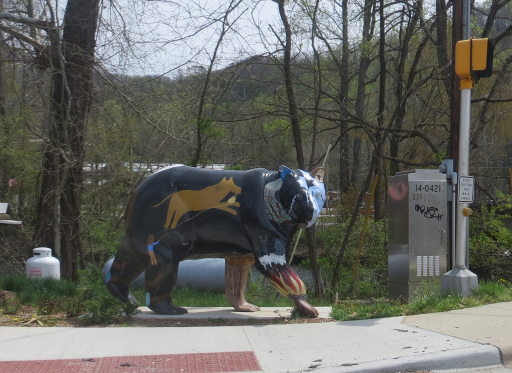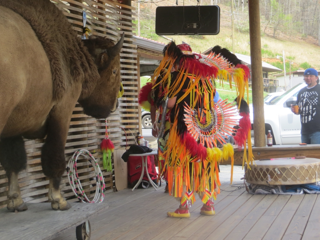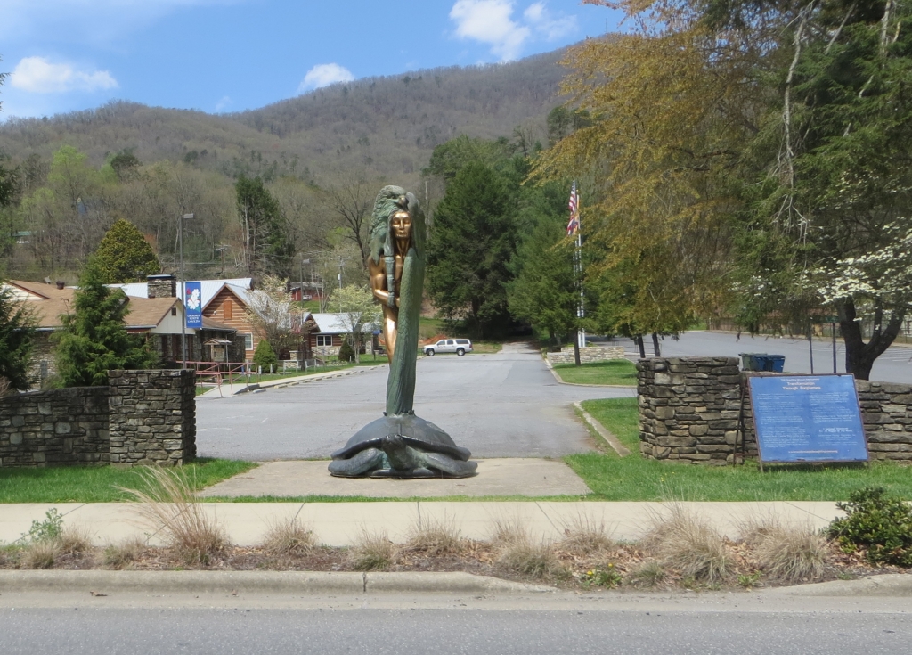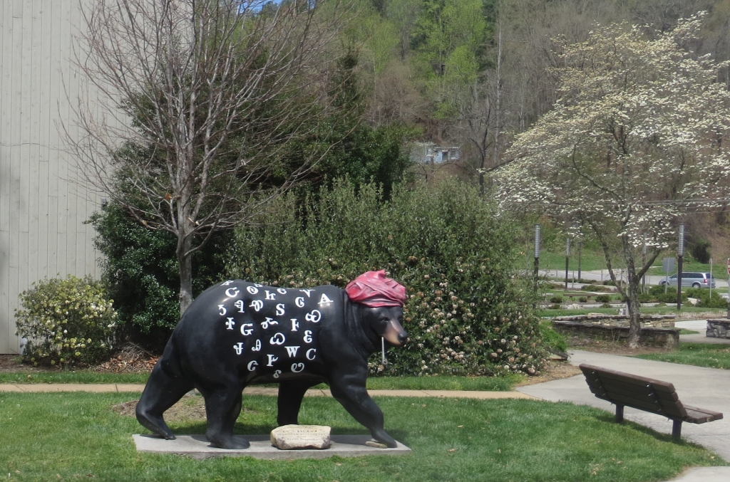 Am Sonntag haben wir uns den Great Smokey Mountains National Park und ein Stückchen des Blue Ridge Parkways vorgenommen. Die Anfahrt auf der 28 ist diesselbe wie Tags zuvor, aber trotzdem noch einmal spannend. Auf der 74 fahren wir Richtung Nordosten nach Cherokee, dem Tor zu den Smokeys. Der Ort ist übervoll von Indianerkitsch: maskierte Indianer, Andenkenläden mit „alten“ Pfeilspitzen und Traumfängerchen, Gold- und Gemstoneschürf- und waschanlagen. Das Pünktchen auf dem i ist ein Springbrunnen mit blau gefärbtem Wasser…