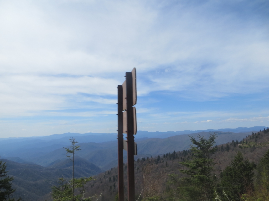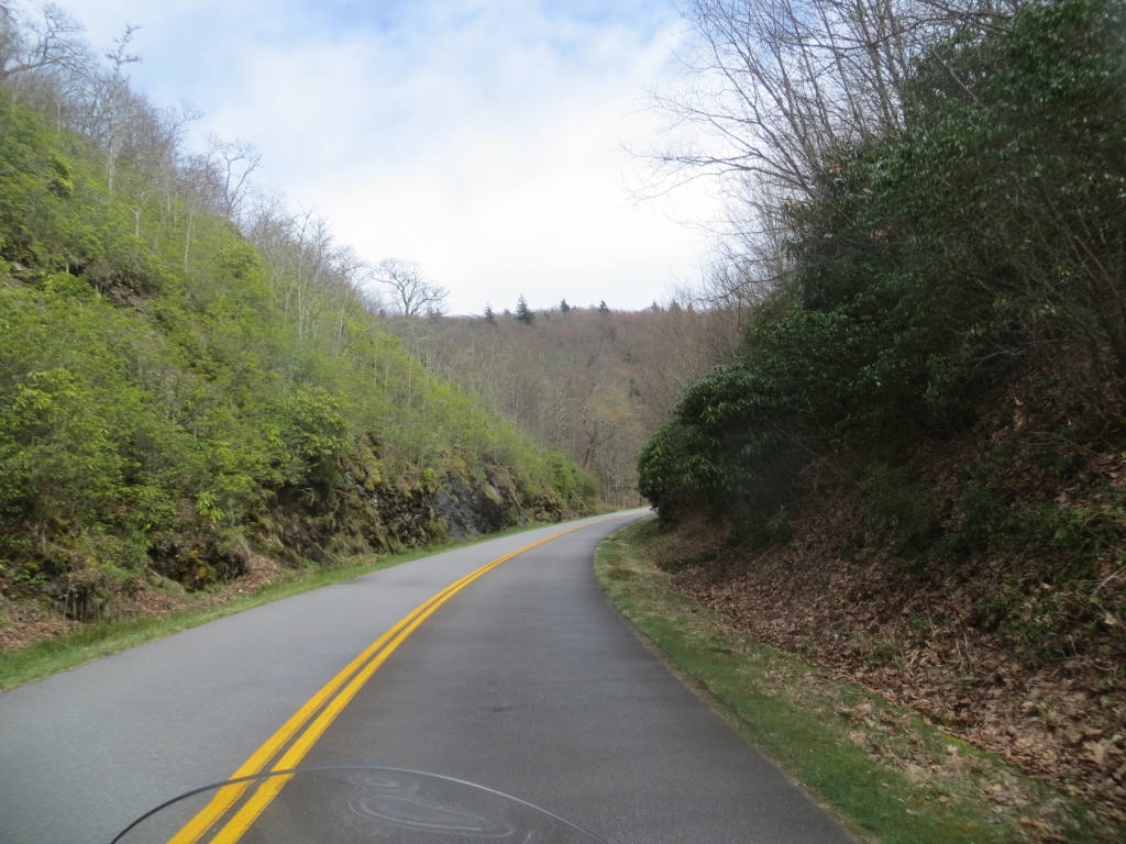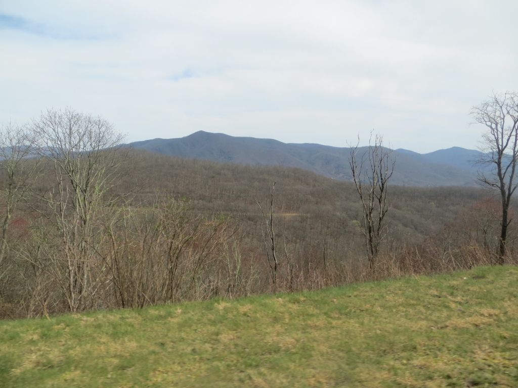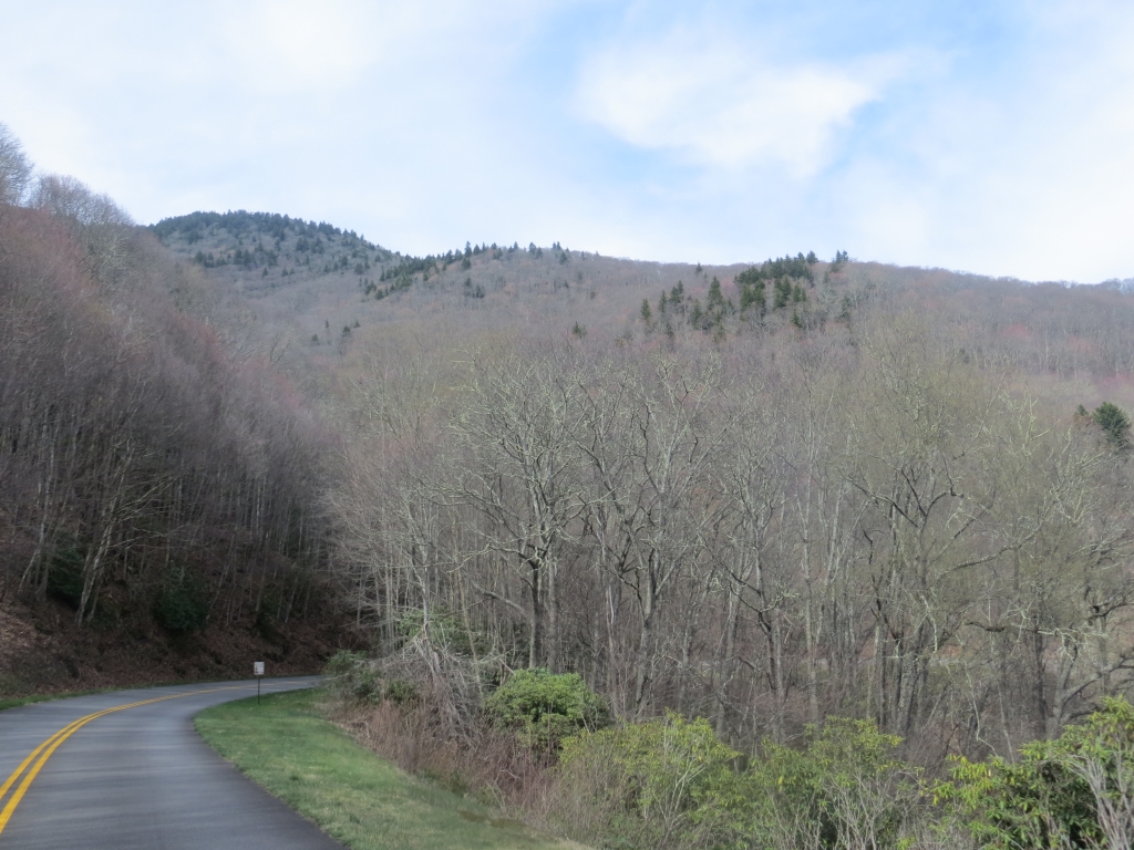 Wir halten uns nur zum Tanken auf und flüchten dann auf die 441, die uns in den Great Smokey Mountains National Park führt. Wir sind nicht so sehr begeistert: Zwar ist die Straße in gutem Zustand und interessant zu fahren, aber die Aussichtspunkte sind eher langweilig und die Natur eintönig. Wir sind hier halt zu früh dran. Nach etwa 2 Drittel der Strecke passieren wir die Staatsgrenze nach Tennessee und drehen kurz vor Gatlinburg wieder um. Wir wollen ein Stück des berühmten Blue Ridge Parkways fahren, der hier im Nationalpark beginnt und sich 469 Meilen nach Virginia zieht. Wie der Natchez Trace Parkway ist auch er für den kommerziellen Verkehr gesperrt und weist eine Höchstgeschwindigkeit von 45 – 55 Meilen auf. Die Staße wurde in den 30er Jahren zur Zeit der Depresssion geplant und als Arbeitsbeschaffungsmaßnahme begonnen, erste Streckenabschnitte wurden 1930 fertig, andere erst in den letzten Jahren.