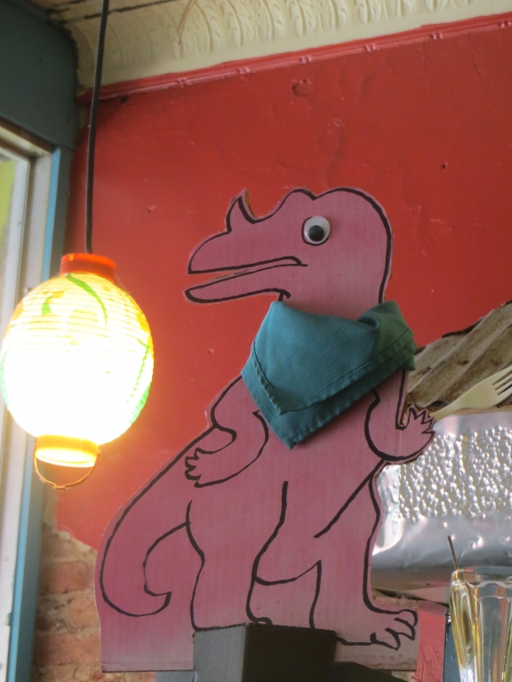 Nach einer herrlichen Fahrt nach Franklin, North Carolina, siehe Video in vorigen Beitrag, beziehen wir dort unser Quartier für eine Woche am 10.04.2015 bei Hanna und Sara. Da für Montag schlechtes Wetter angesagt ist, beschließen wir, gleich am Wochenende 2 Tage in den Bergen zu fahren. Unser Ziel am Samsgtag ist der Dragon Tail, eine nur 11 Meilen lange Strecke, allerdings mit 318 Kurven geschmückt. Da lacht natürlich das Motorradfahrerherz. Schon die Anfahrt auf der 28 ist beeindruckend. In großen Schwüngen zieht sie in die Höhe und wird immer kurviger, je weiter wir uns Deals Gap nähern, dem Ausgangspunkt zum Dragon Tail, siehe tailofthedragon.com. Ein Bikermotel, eine Campside, ein Souveniershop und ein einfaches Restaurant sind allesamt Goldquellen, weil hier immer was los ist, selbst jetzt im Frühling sind etliche Biker unterwegs und sorgen im Grill unter den aus allen erdenklichen Landesteilen stammenden an der Decke aufgehängten und signierten T-Shirts für Umsatz, wenn sie sich nicht gerade vor dem mannshohen Holzdrachen, der vor der Tür steht, gegenseitig fotografieren (ich muss an das Drachenfest auf unserer Motorradausfahrt in den Bayrischen Wald denken). Eine große Sammlung von Polizeistickern aus ganz USA gefallen mir besonders. Der mit Unfallrelikten (mit dokumentenechten Filzern sind „The days of doom“ darauf festgehalten) behängte Baum ist auch das eine oder andere Bild wert. Nachdem wir alles bestaunt haben und mit diet coke unseren Koffeinhaushalt in Ordnung gebracht haben, schleusen wir uns dann in den Dragon Tail bergabwärts ein.