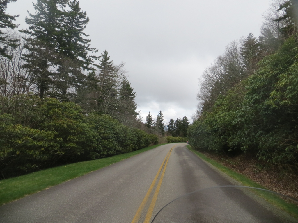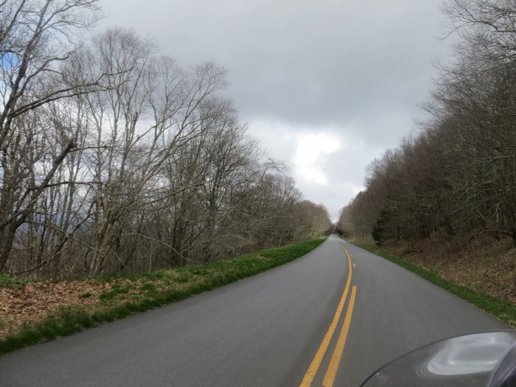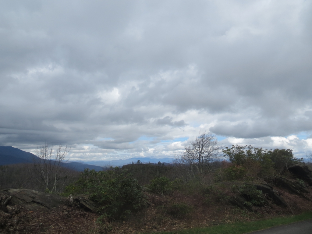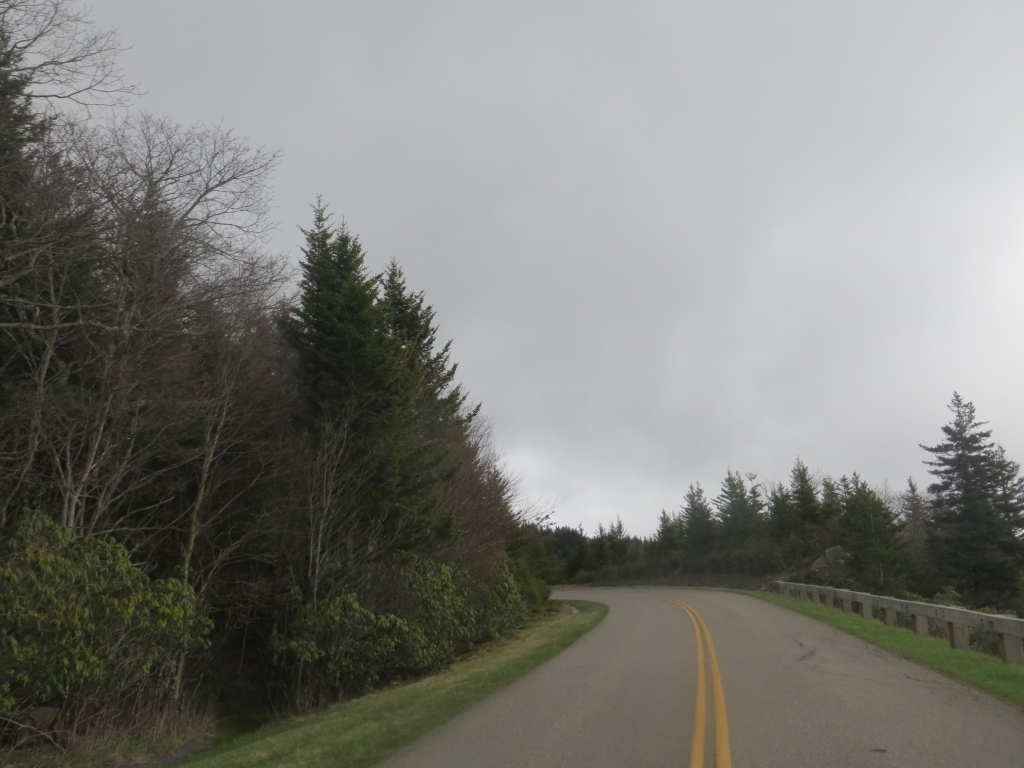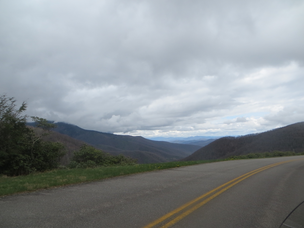 Wir halten uns nur zum Tanken auf und flüchten dann auf die 441, die uns in den Great Smokey Mountains National Park führt. Wir sind nicht so sehr begeistert: Zwar ist die Straße in gutem Zustand und interessant zu fahren, aber die Aussichtspunkte sind eher langweilig und die Natur eintönig. Wir sind hier halt zu früh dran. Nach etwa 2 Drittel der Strecke passieren wir die Staatsgrenze nach Tennessee und drehen kurz vor Gatlinburg wieder um. Wir wollen ein Stück des berühmten Blue Ridge Parkways fahren, der hier im Nationalpark beginnt und sich 469 Meilen nach Virginia zieht. Wie der Natchez Trace Parkway ist auch er für den kommerziellen Verkehr gesperrt und weist eine Höchstgeschwindigkeit von 45 – 55 Meilen auf. Die Staße wurde in den 30er Jahren zur Zeit der Depresssion geplant und als Arbeitsbeschaffungsmaßnahme begonnen, erste Streckenabschnitte wurden 1930 fertig, andere erst in den letzten Jahren.