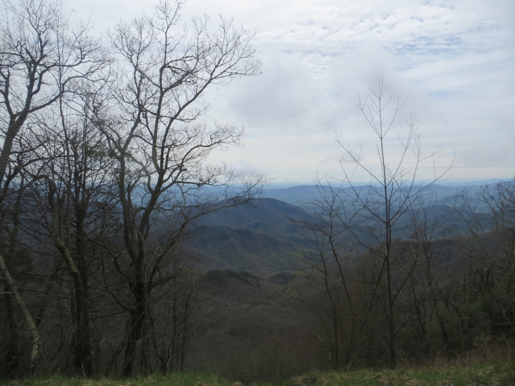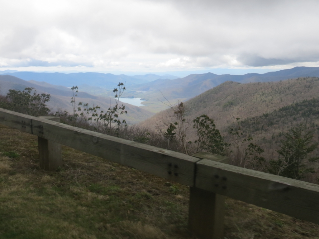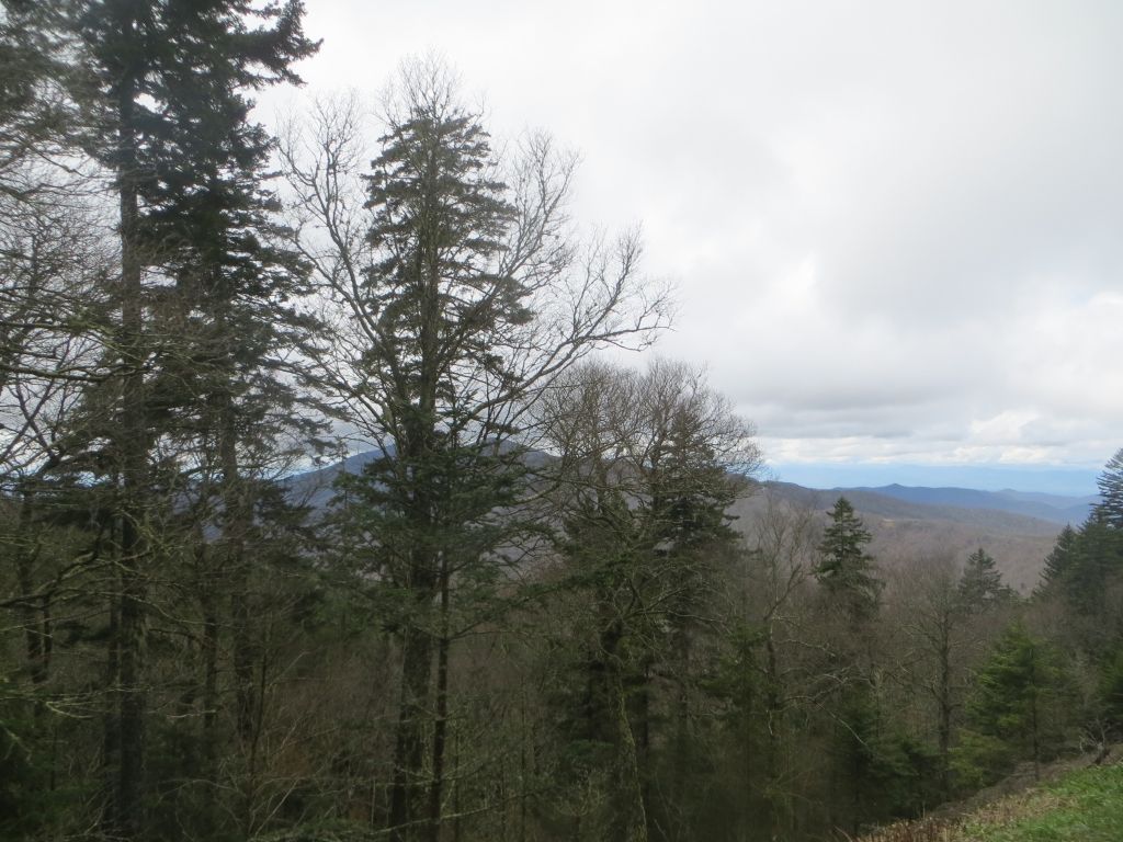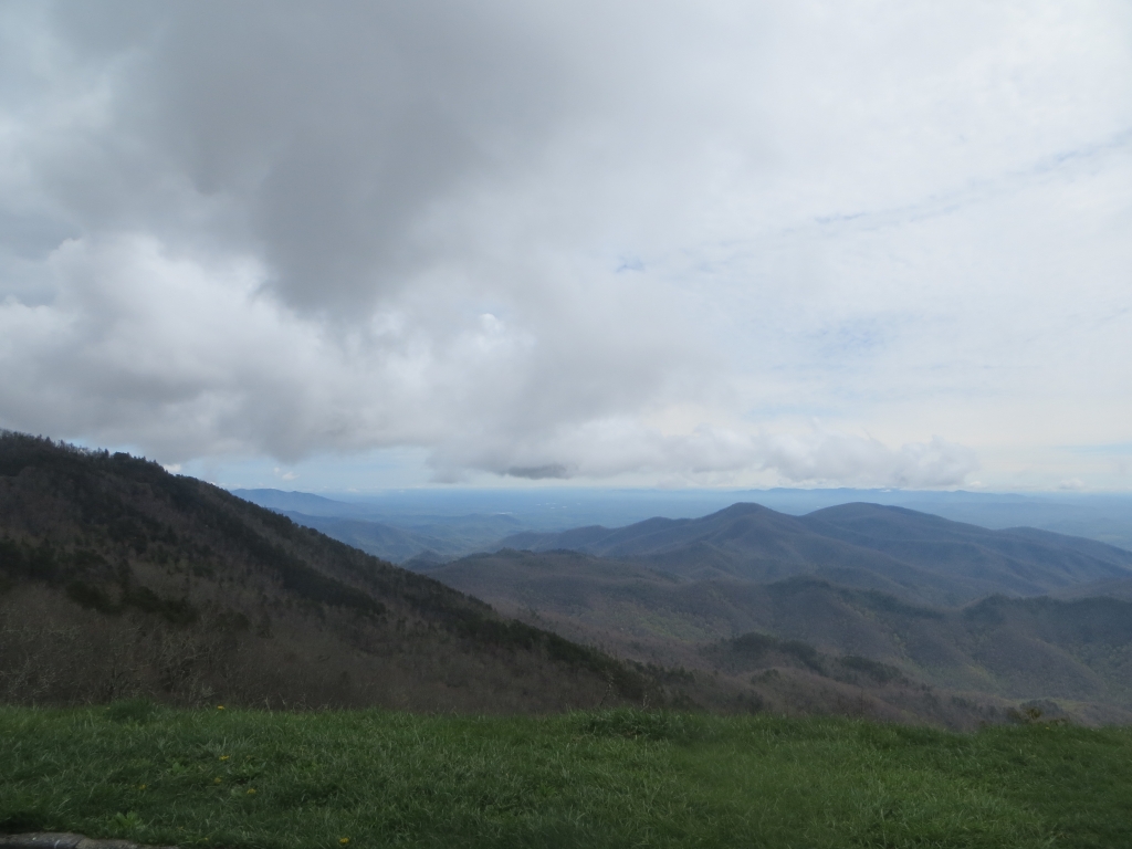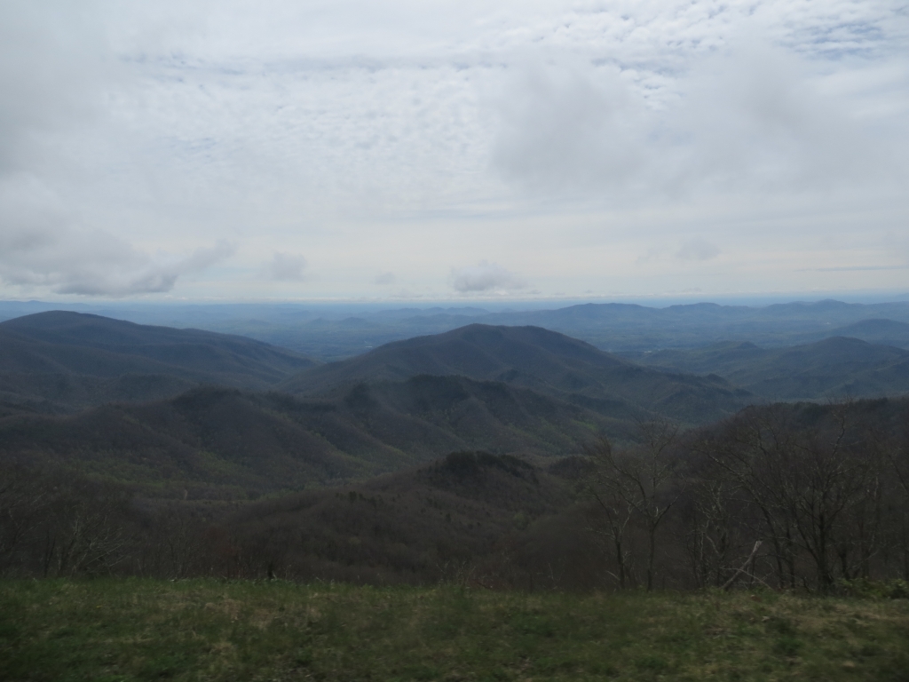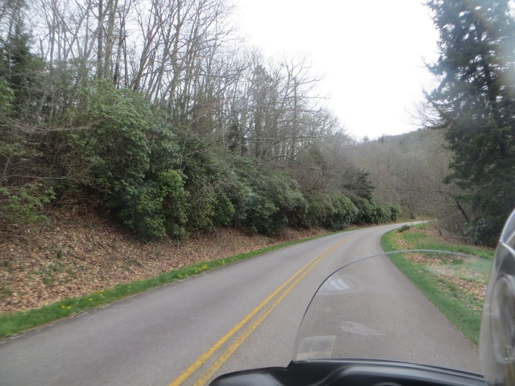 Wir halten uns nur zum Tanken auf und flüchten dann auf die 441, die uns in den Great Smokey Mountains National Park führt. Wir sind nicht so sehr begeistert: Zwar ist die Straße in gutem Zustand und interessant zu fahren, aber die Aussichtspunkte sind eher langweilig und die Natur eintönig. Wir sind hier halt zu früh dran. Nach etwa 2 Drittel der Strecke passieren wir die Staatsgrenze nach Tennessee und drehen kurz vor Gatlinburg wieder um. Wir wollen ein Stück des berühmten Blue Ridge Parkways fahren, der hier im Nationalpark beginnt und sich 469 Meilen nach Virginia zieht. Wie der Natchez Trace Parkway ist auch er für den kommerziellen Verkehr gesperrt und weist eine Höchstgeschwindigkeit von 45 – 55 Meilen auf. Die Staße wurde in den 30er Jahren zur Zeit der Depresssion geplant und als Arbeitsbeschaffungsmaßnahme begonnen, erste Streckenabschnitte wurden 1930 fertig, andere erst in den letzten Jahren.
