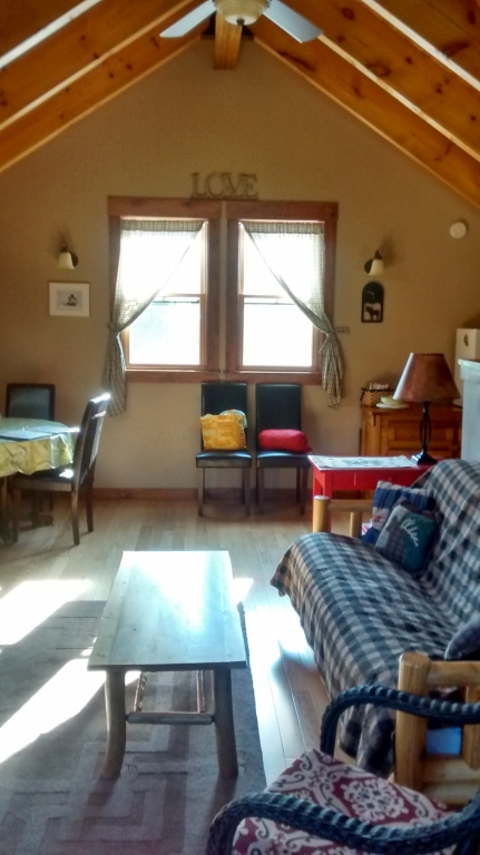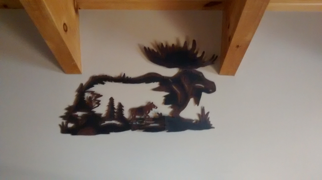 Auch Keith und Cherryl besitzen eine und haben sie wundervoll ausgebaut. Sie haben es mit Elch und Bär dekoriert, also nordisch, was uns sehr an unsere Cabin in Florida erinnert( die übrigens verkauft ist, da Linda und Larry weiter in den Süden ziehen). Hier haben wir wieder eine Rückverbindung, wie so oft. Aber es gibt hier sogar etwas Heimisches, nämlich einen geschnitzten Bergsteiger aus Oberammergau, dessen Foto leider verschwunden ist.
