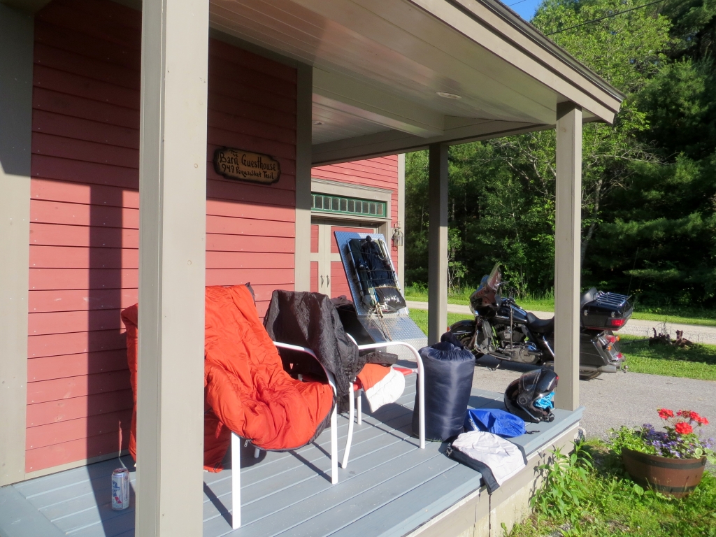 Die Barn ist hier in Baldwin, einem Städtchen, ehemals voller Apfelplantagen und einer Apfeltrockenfabrik – der Baldwin Apfel hat hier seinen Namen bekommen – unser Zuhause für eine Woche. Der Ort liegt wenige Meilen von der Grenze nach New Hampshire entfernt nahe eine Seenplatte. Cherryl und Keith haben In dem großen Raum unter dem Dach verbringen wir gemütlich zwei Regentage, an denen es von morgens bis abends runterpratzelt ohne Pause.