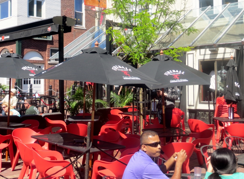 Wir brauchen Wifi, um die Bestätigung von Airbnb zu lesen. Es ist (noch) sonnig, und wir finden direkt an der Fußgängerzone, die sehr bevölkert ist, v.a. mit Studenten, – – oh Wunder – einen Parkplatz. Um die Ecke gleich ein Starbucks, schnell einen Kaffee bestellen, noch ein Blick aus dem Fenster