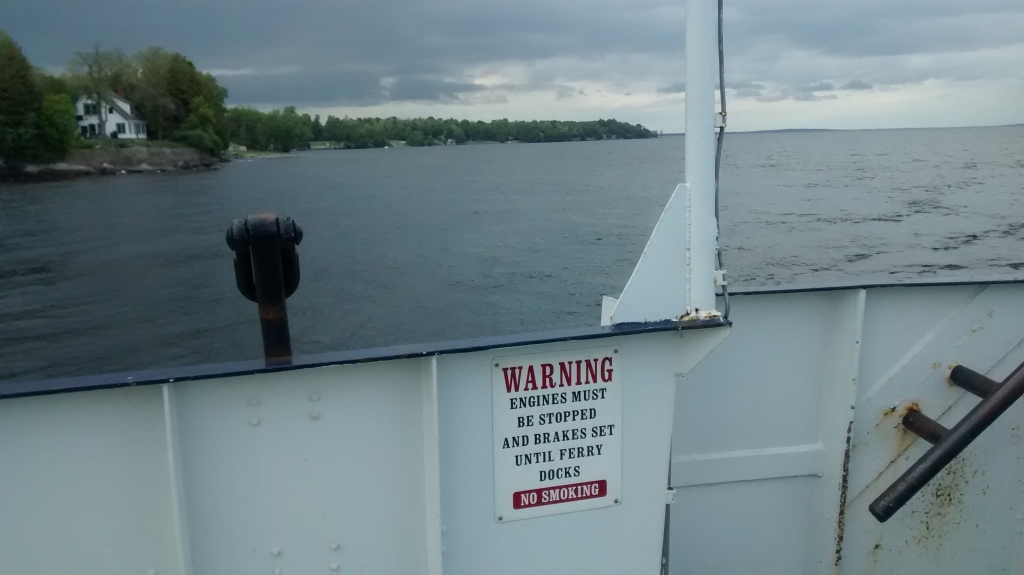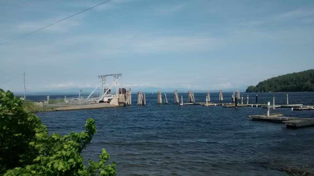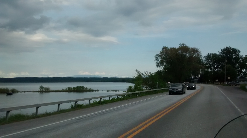 Richard hat uns eine tolle Strecke nach Vermont empfohlen, rauf an die Westseite des Lake Champlain bis Port Kent, dann mit der Fähre nach Burlington übersetzen. Bei Airbnb haben wir dort für den Abend ein Zimmer angefragt.